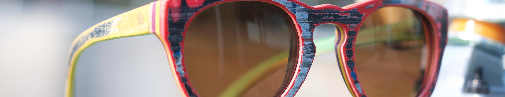 Badass sunglasses made of recycled skateboards are the perfect way to shred the day.